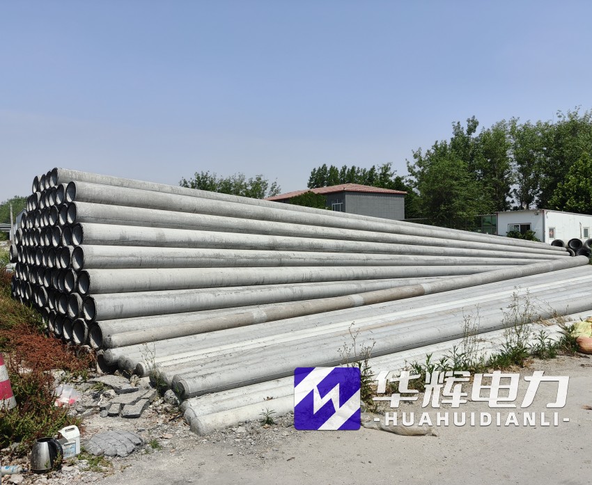 8米康县水泥电线杆通常采用钢筋混凝土离心成型工艺,杆体呈锥形结构,梢径150mm-190mm,根径230mm-270mm,壁厚40mm-50mm。根据标准GB/T4623-2014,产品混凝土强度等级不低于C40,主筋采用HRB400级钢筋,配筋量根据抗裂弯矩要求设计,标准抗裂弯矩可达12-18kN·m,破坏弯矩不小于24kN·m。杆体重量约0.5-0.8吨,运输安装便捷,适合人工或小型机械施工。